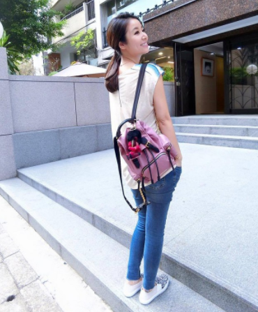 林心如背的粉色小款Burberry後背包