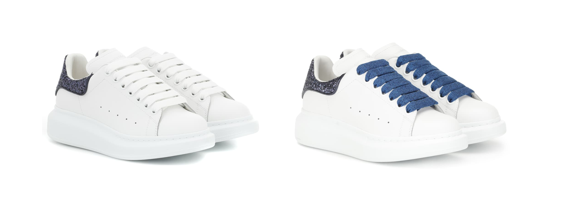 Alexander McQueen Glitter-trimmed leather sneakers銀色厚底尺碼還齊