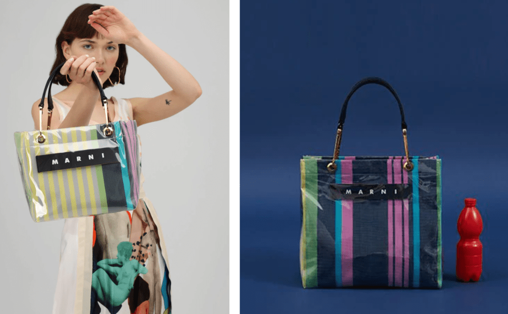 Marni GLOSSY GRIP SMALL SQUARE TOTE BAG綠色條紋托特包小款綠色65折