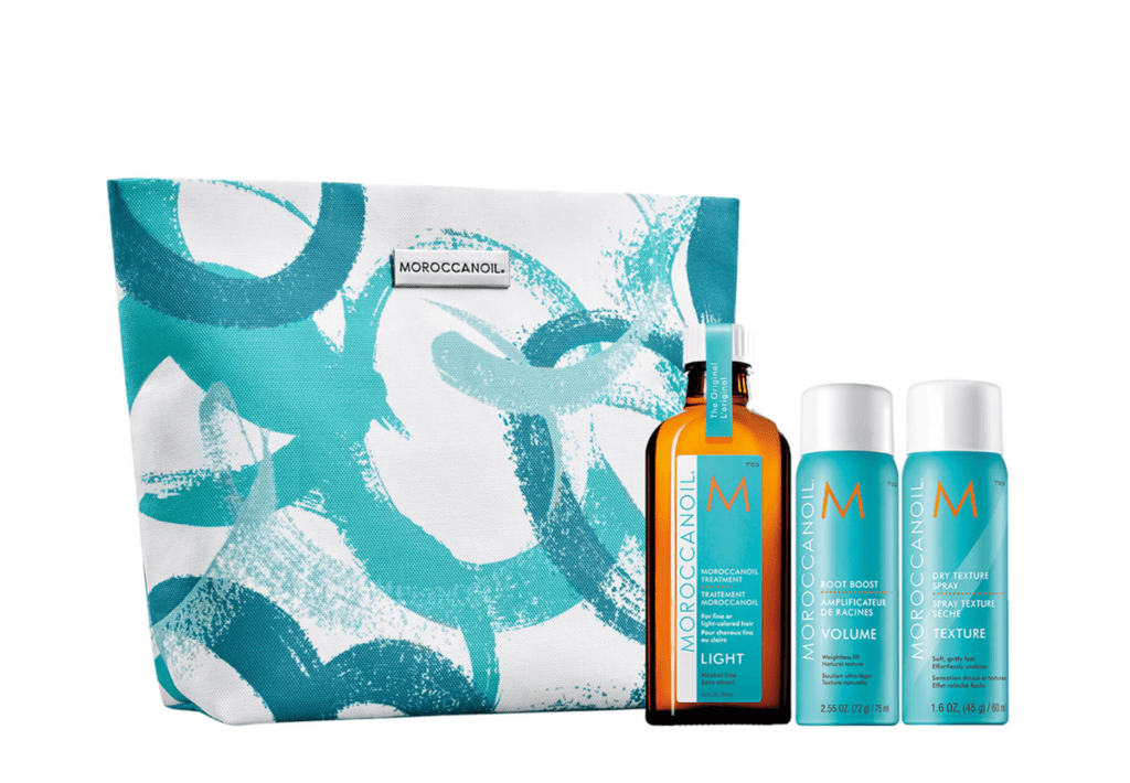 MOROCCANOIL BEAUTY BAG – VOLUME 髮量豐盈組合,有輕優油正裝100mL + 髮根豐量噴霧 +清爽質感噴霧套裝£34.65(輕優油100ml £32.85 + 髮根豐量噴霧£17.45 + 清爽質感噴霧£19.35)等於半價的組合