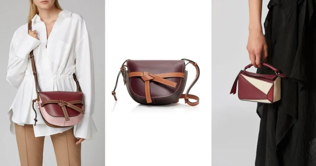 Loewe Gate Small Leather Shoulder Bag酒紅拚粉色小款Gate,寄台灣包稅包運$1550.78 (台灣定價7萬5) 約61折