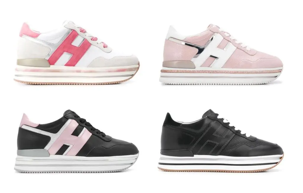Hogan H483 low-top platform sneakers黑色配粉色Logo球鞋4折