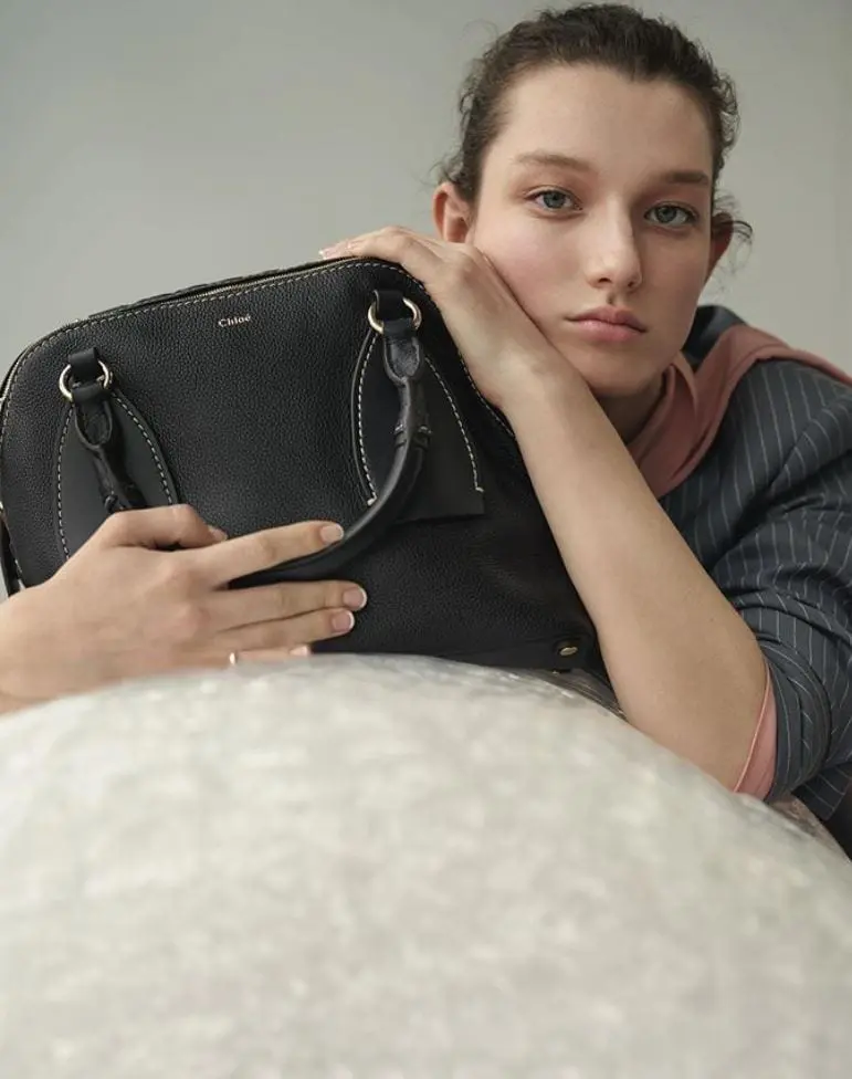 CHLOÉ Darryl medium leather shoulder bag灰色Darryl中款7折