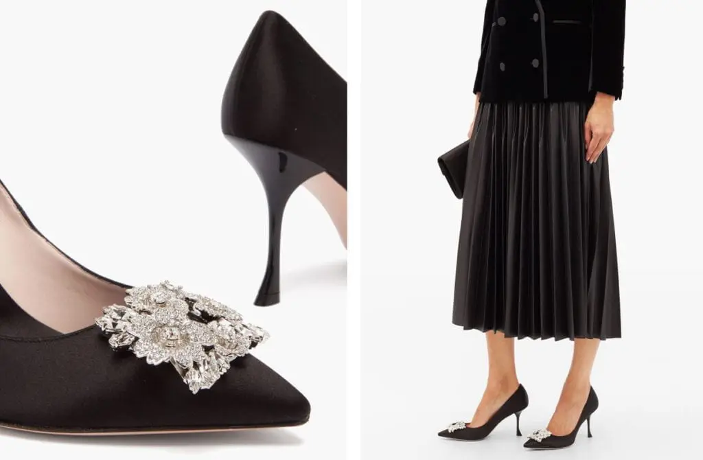 ROGER VIVIER Bouquet crystal-embellished satin pumps黑色水鑽涼鞋5折