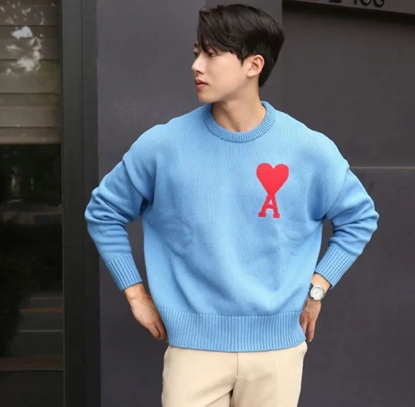 AMI Men’s Coeur Jumper – Blue藍色大愛心毛衣