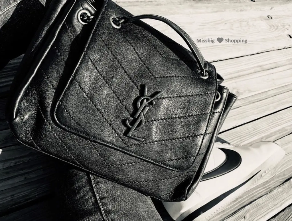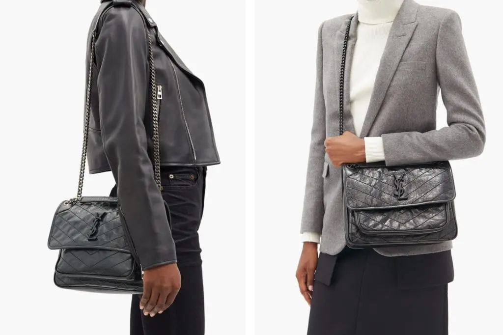 SAINT LAURENT Niki medium creased-leather shoulder bag 黑色中款Niki黑鍊不能打折但價格超好的,比黑色銀鍊Niki便宜一百多美金