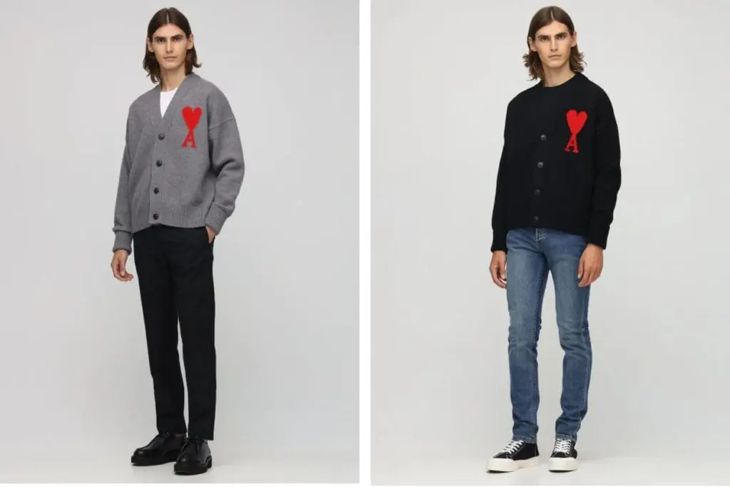 AMI ALEXANDRE MATTIUSSI HEART LOGO INTARSIA WOOL KNIT CARDIGAN 灰色大愛心開襟衫,秋天這個季節很好搭配