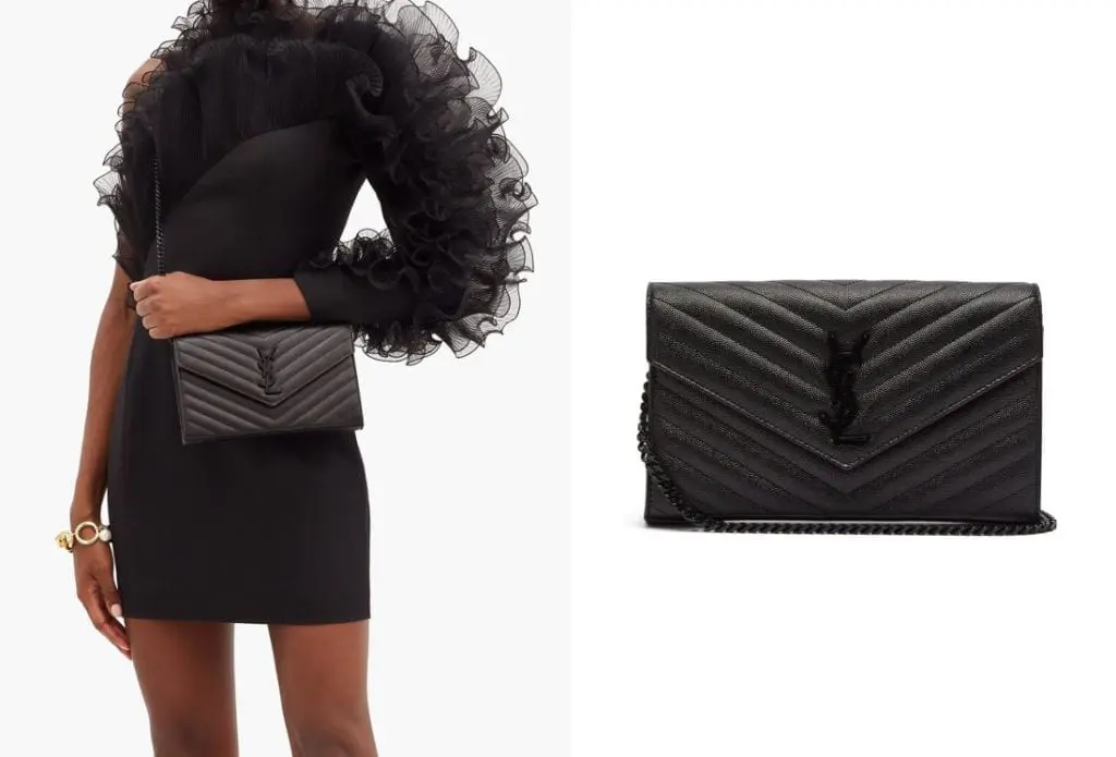 SAINT LAURENT Chain-strap quilted grained-leather shoulder bag 黑色WOC信封包,折扣後加關稅約2萬8台幣(台灣網路查大約4萬3喔)約台灣66折