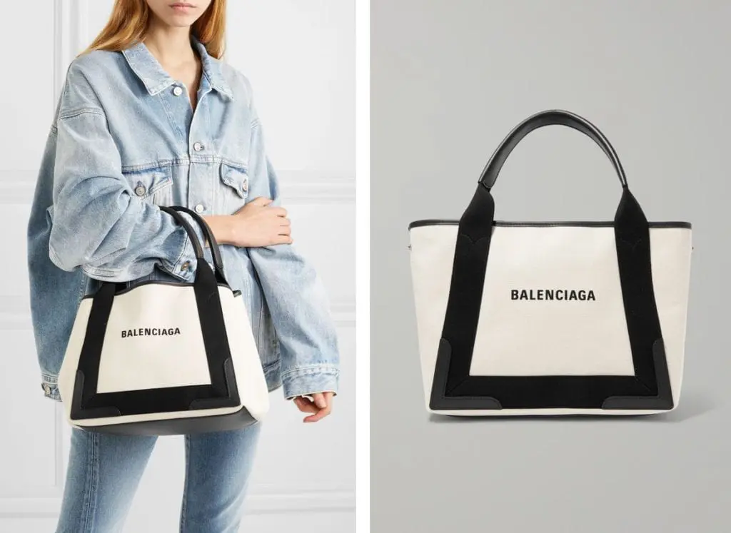 BALENCIAGA Leather-trimmed logo-print canvas tote Cabas帆布包XS款6折,寄台灣包關稅$570.84約台幣NT$16,297(這款有背帶可以斜背) 之前便宜也要兩萬一
