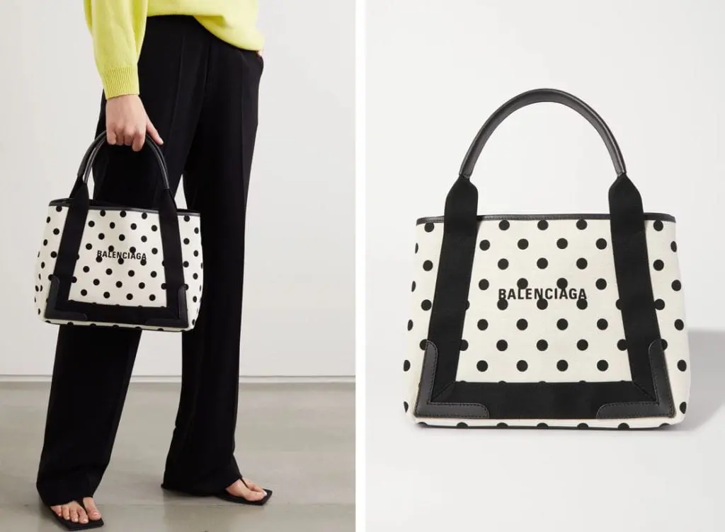 BALENCIAGA Leather-trimmed polka-dot canvas tote 點點款帆布包7折,寄台灣包關稅運費$1,019.86美金,很可愛耶!! 數量不多囉考慮太久應該就會缺貨 (尺寸約寬20*高22cm)