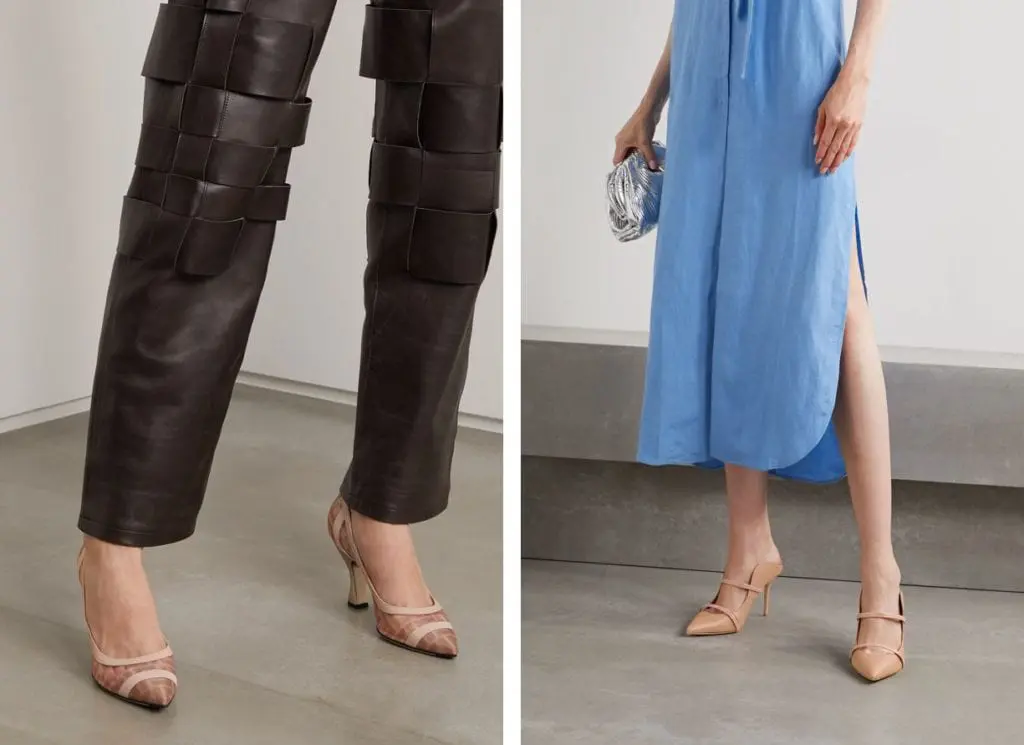 MALONE SOULIERS Maureen 85 patent-trimmed leather mules 裸色穆勒鞋6折,還有零星尺碼