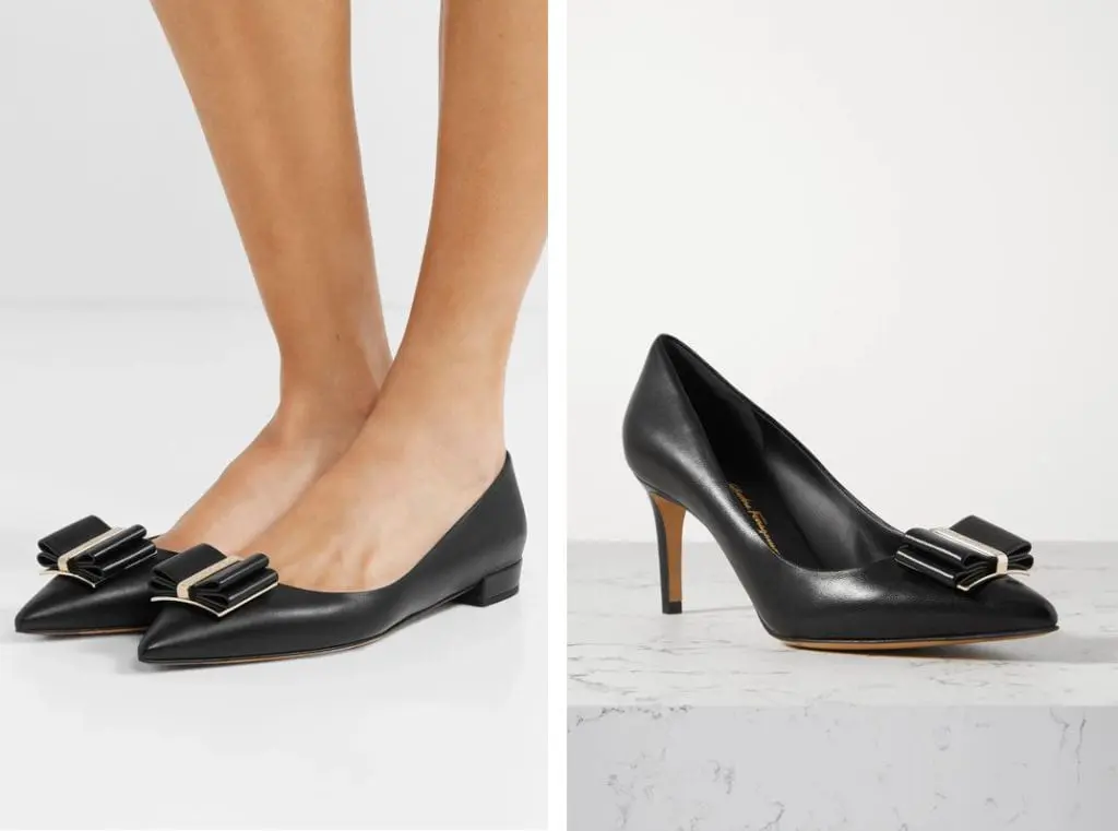 SALVATORE FERRAGAMO Zeri bow-embellished leather pumps 黑色7公分跟鞋5折,價格很好(網站建議尺碼正常)