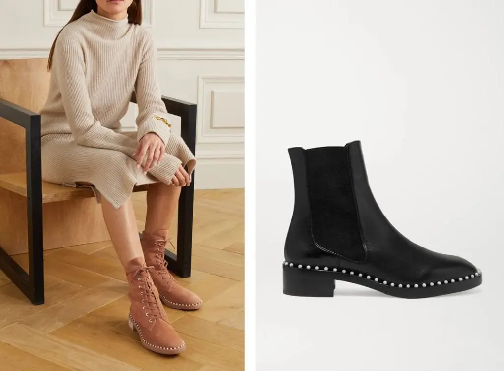 STUART WEITZMAN Cline faux pearl-embellished leather Chelsea boots 黑色Cline珍珠靴6折,不用綁鞋帶很搶手耶