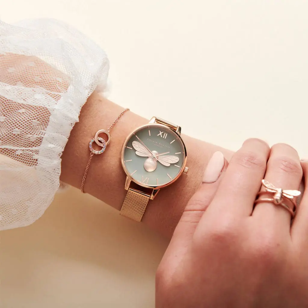 Olivia Burton Women’s Lucky Bee Mesh Watch 玫瑰金蜻蜓手錶