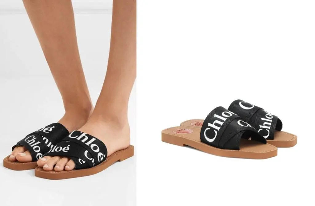■ CHLOÉ Woody canvas slides 黑色Logo帆布涼鞋7折