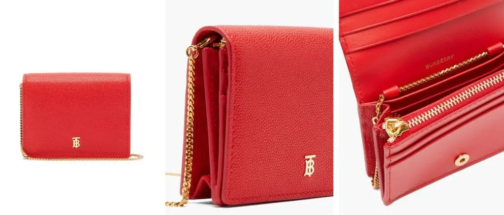 BURBERRY Jade chain-strap pebbled-leather wallet 紅色WOC折上折買下來加關稅約台幣$9,137