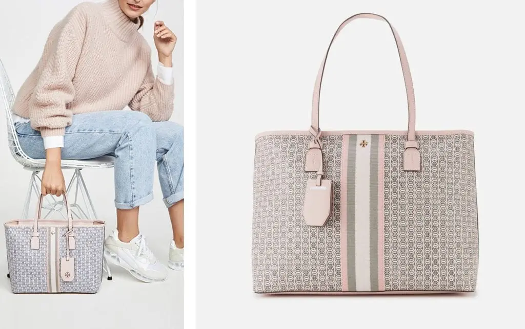 ■   Tory Burch Women’s Gemini Link Canvas Top Zip Tote Bag 粉色托特包,長年熱銷款也直接65折