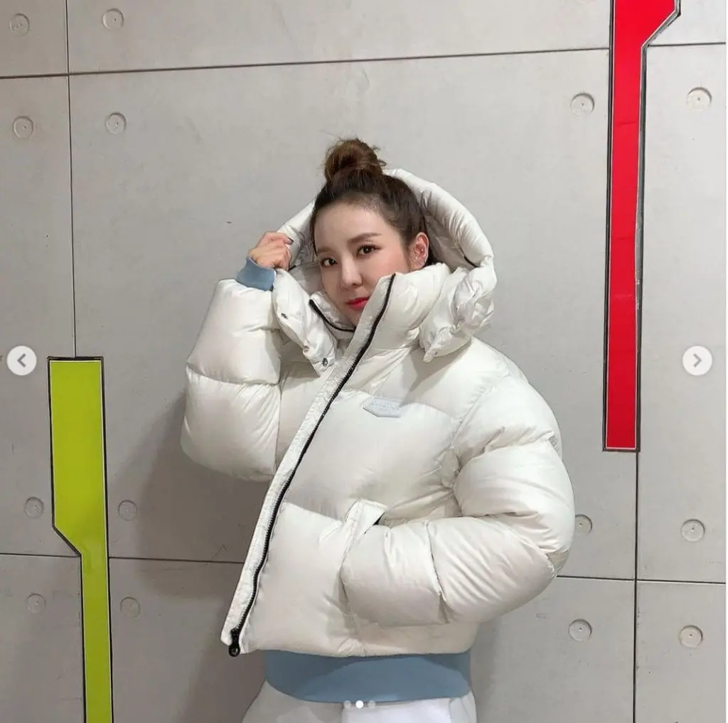 韓國童顏女神Dara穿DUVETICA White Down Kumadue Jacket 白色羽絨衣黑拉鍊也蠻好看72折