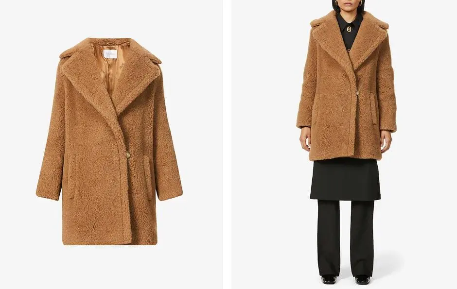 MAX MARA Orchis camel and silk-blend coat 泰迪熊短版外套