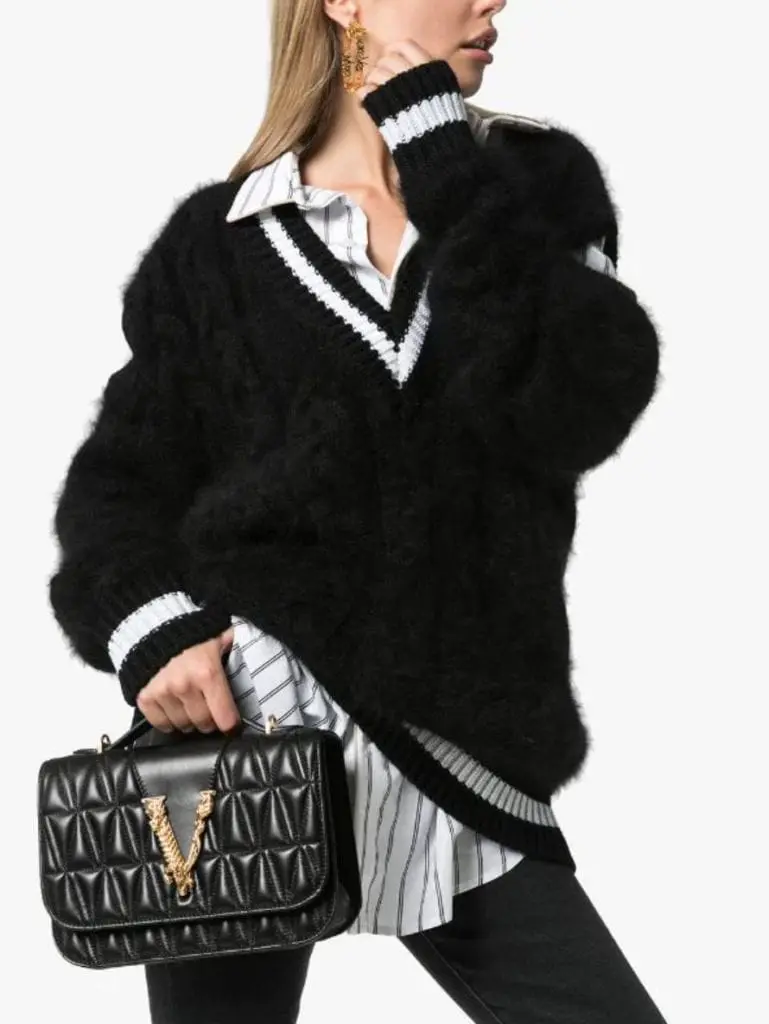 VERSACE VIRTUS QUILTED LEATHER TOP HANDLE BAG 黑色壓紋包包