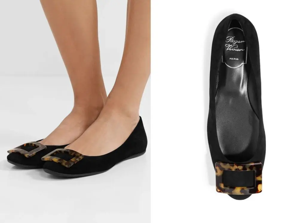 ROGER VIVIER 10MM GOMMETTE SUEDE FLATS W/ BUCKLE 黑色麂皮平底鞋
