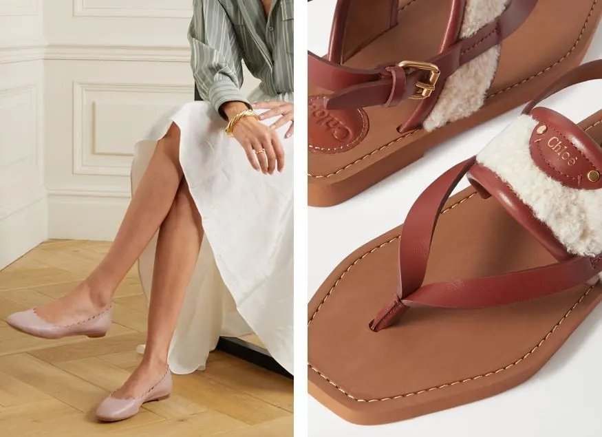 CHLOÉ Woody shearling and leather sandals 夾腳涼鞋5折+再85折