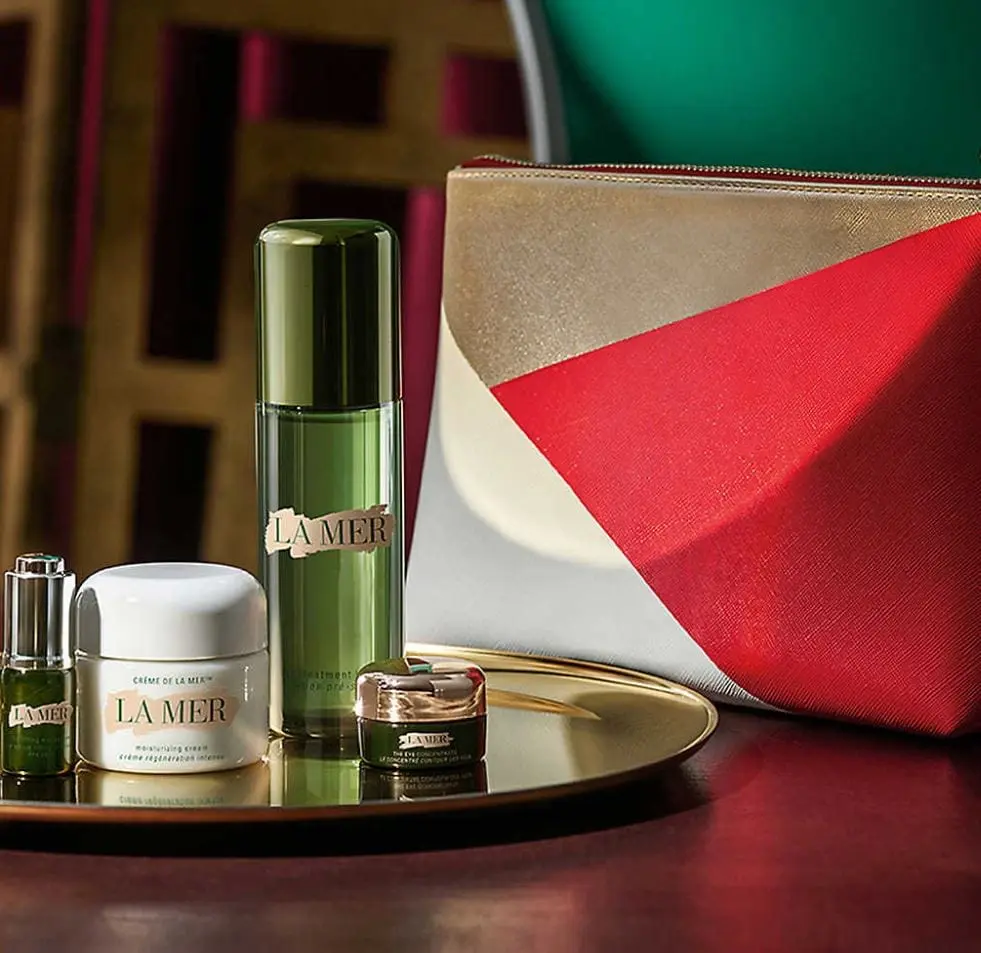 LA MER The Radiant Hydration Collection gift set 亮采水潤套裝$8950,總價值超過台幣NT11,500包括經典乳霜30ml(價值$6600) + 濃縮精華露 100ml(價值$3500) + 濃萃修復眼霜 5ml (價值$1400)+ 妍塑緊緻眼部精華 5ml
