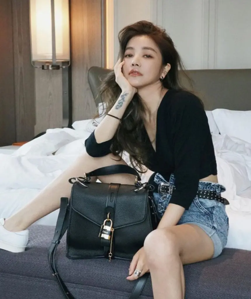 許路兒隋棠同款CHLOÉ ABY LEATHER BAG黑色鎖頭包