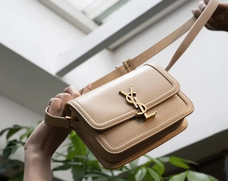 SAINT LAURENT Solferino YSL-plaque leather shoulder bag 駝色中款