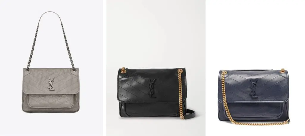 SAINT LAURENT Niki medium YSL-plaque leather shoulder bag深藍色中款Niki這各配色也很好看