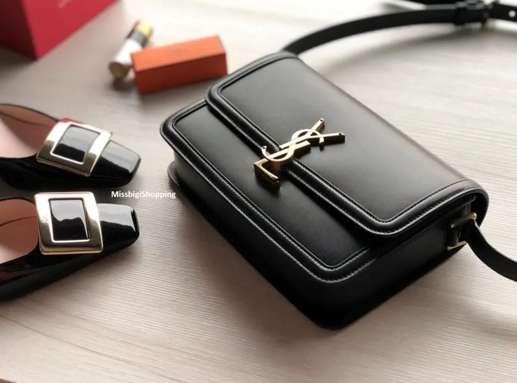 SAINT LAURENT Solferino YSL-plaque leather shoulder bag 黑色中款,折扣後加關稅約台幣NT$71,695(台灣定價NTD 90,550)約79折