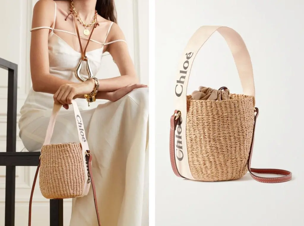 CHLOÉ Woody Small raffia bucket bag 藤編包可以斜背,這邊未稅€ 379(歐洲定價€ 450)