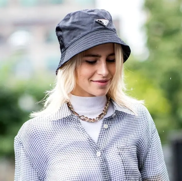 楊冪同款PRADA Prada Triangle Logo Bucket Hat 黑色漁夫帽,寄台灣包關稅$444.38(台灣定價NT13,470)
