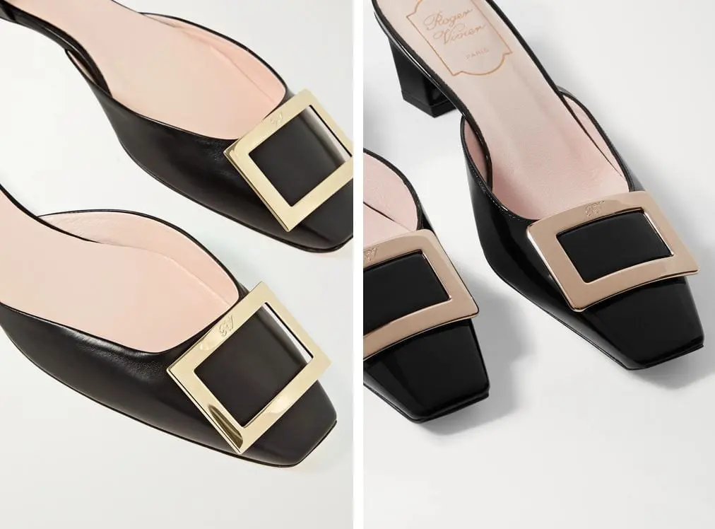 ROGER VIVIER Belle Vivier patent-leather mules 黑色穆勒鞋,寄台灣包關稅€441.61約台幣一萬四千多(尺寸正常/腳寬建議大半號以免後腳跟跑出去)