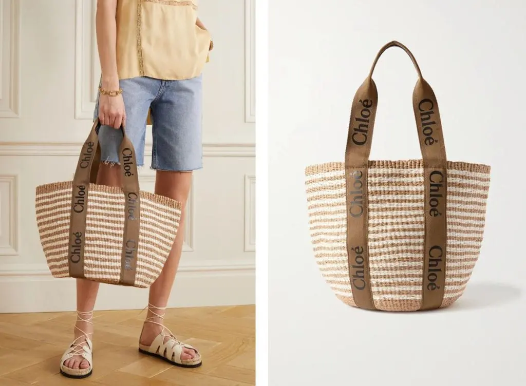 CHLOE Logo-strap raffia tote bag 大款條紋藤編包,S站會員可以這裡買,寄台灣包關稅$16,775(數量不多囉)