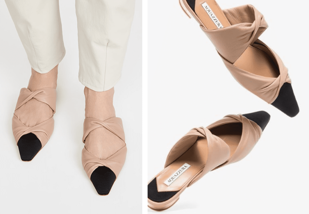 AQUAZZURA Twist Flat leather mules 雙色平底穆勒鞋
