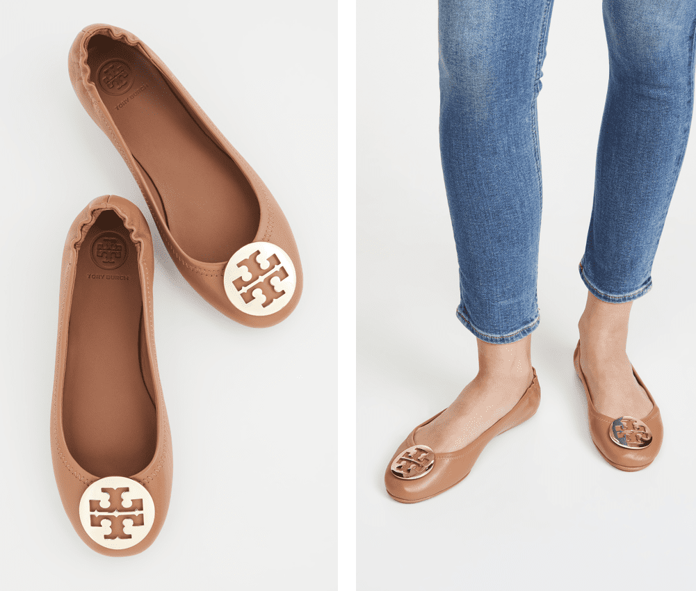 TORY BURCH Minnie Travel leather ballet flats 焦糖色娃娃鞋7折