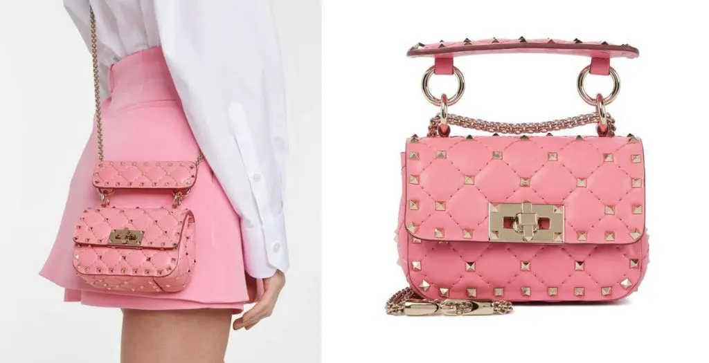 Valentino Garavani Rockstud Spike Micro leather crossbody bag 粉色鉚釘包Micro款,很可愛耶隨身小物應該裝得下加關稅約2萬7還蠻好入手的價格
