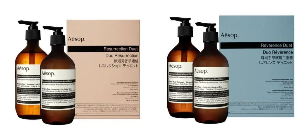 AESOP RESURRECTION DUET 賦活芳香手護組,折扣後約£61.63英鎊約台幣NT$2,403(台灣定價$3,750)約台灣64折