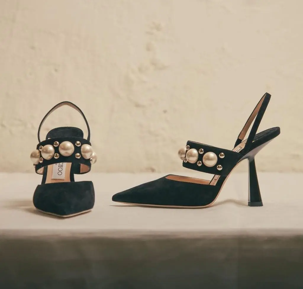 JIMMY CHOO Breslin 100 faux-pearl-embellished suede slingbacks 黑色珍珠Slingback