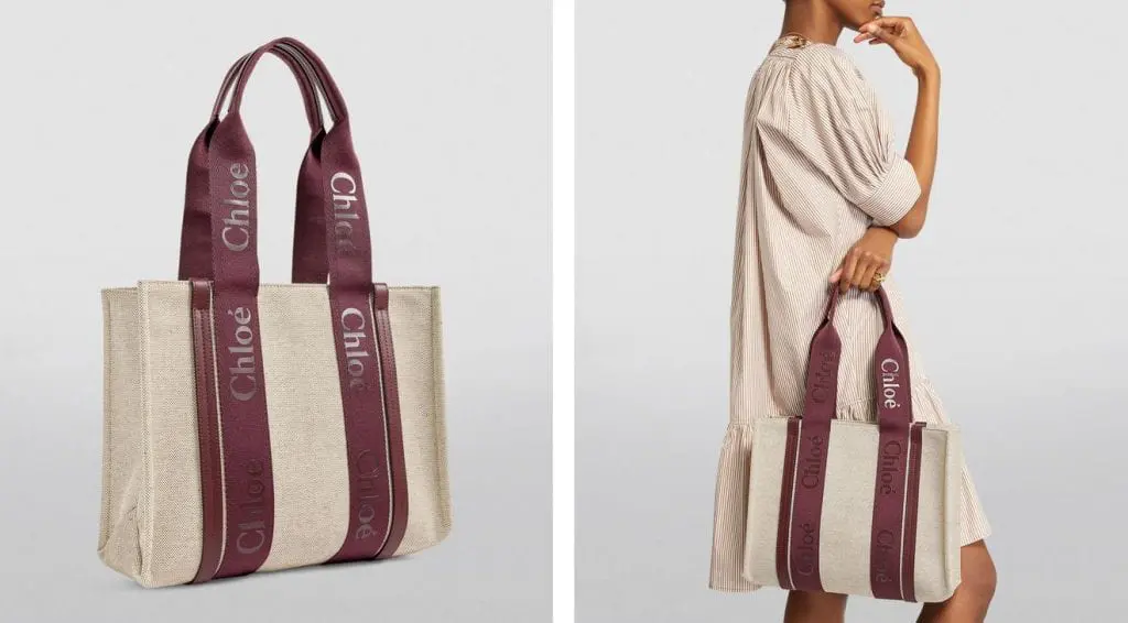 CHLOÉ Medium Canvas Woody Tote Bag 帆布包中款酒紅色
