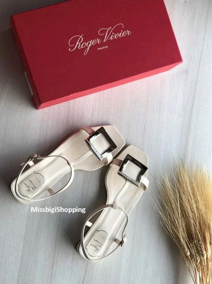 ROGER VIVIER 15MM COVERED BUCKLE LEATHER MULES 新款低跟涼鞋也加入折扣耶