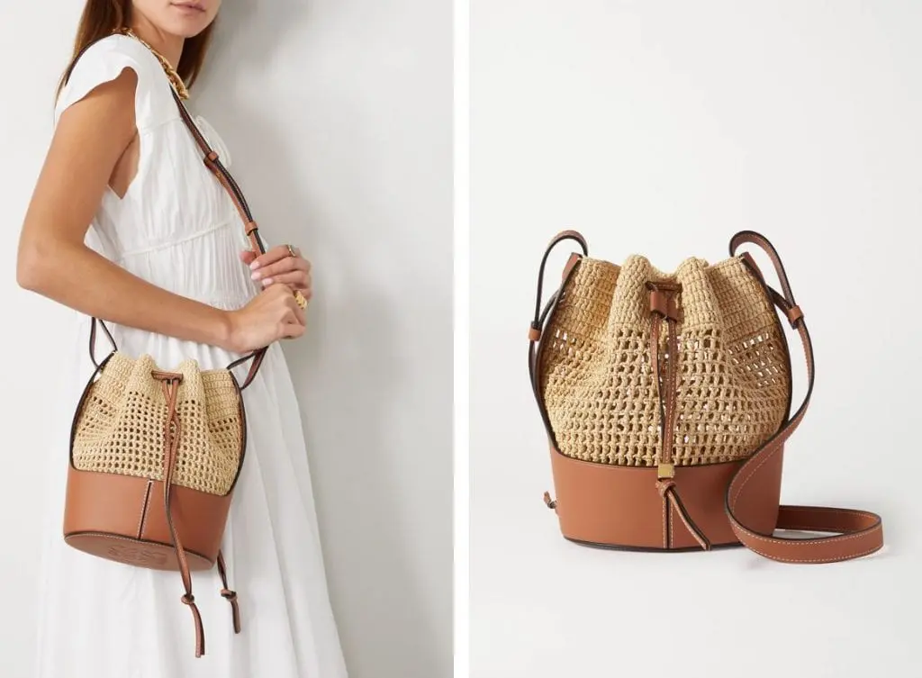 55折好看耶!! LOEWE Balloon small leather and raffia bucket bag 氣球包藤編款7折,寄台灣包關稅£1212.75英鎊約台幣4萬7(台灣定價8萬5)約台灣55折