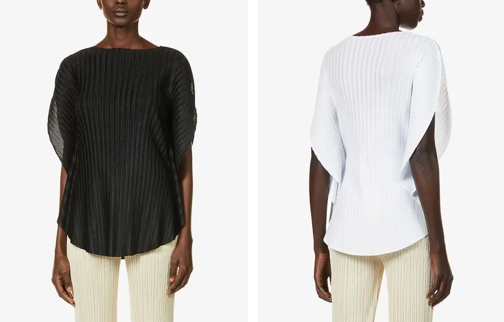 PLEATS PLEASE ISSEY MIYAKE Cape-sleeved oversized woven top 黑色短袖上衣很修飾手臂