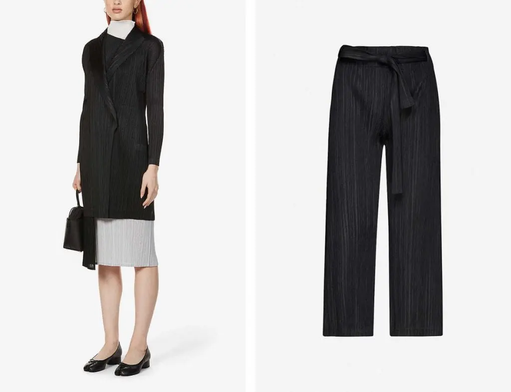 PLEATS PLEASE ISSEY MIYAKE Single-breasted pleated woven wrap coat 黑色外套
