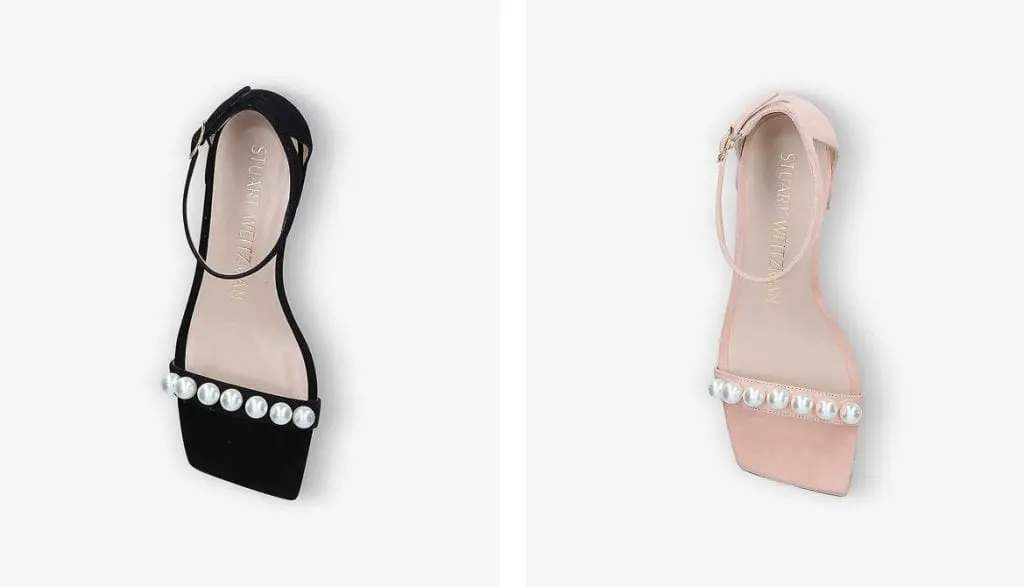 STUART WEITZMAN Nudistjune pearl-embellished suede heeled sandals 珍珠涼鞋黑色麂皮款
