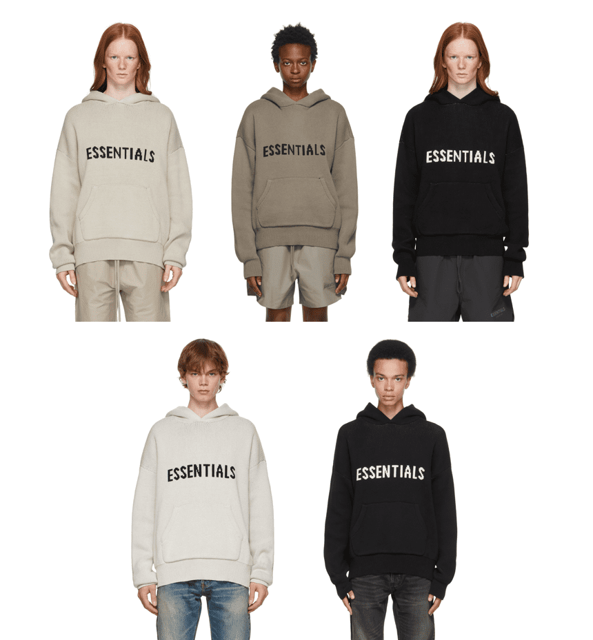 ESSENTIALS Grey Knit Logo Hoodie 淺灰針織帽T男款
