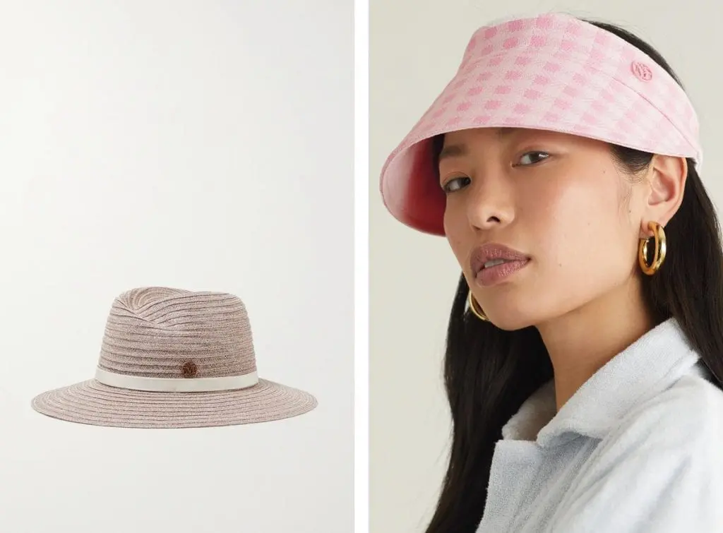 MAISON MICHEL Claudia reversible gingham canvas and cotton visor 粉色格紋遮陽帽更低6折