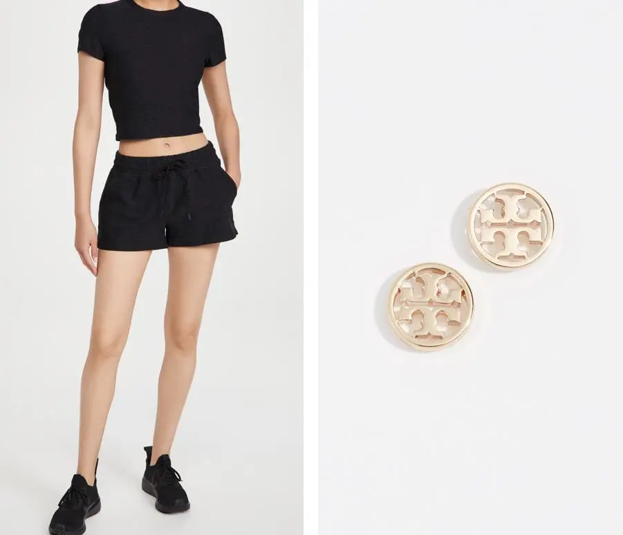 Tory Burch Logo Circle Stud Earrings 金色Logo耳環