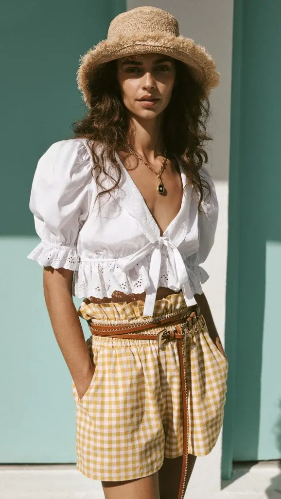ENGLISH FACTORY Gingham Print Shorts 格紋芥末黃短褲很可愛